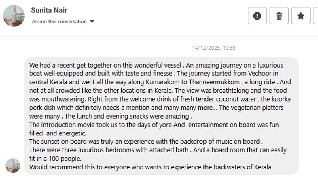 Step aboard Coventina, a 100 ft × 22 ft double-decker luxury houseboat on Vembanad Lake. Designed for premium group travel, it offers unmatched comfort, elegance, and flexibility for both leisure and events.